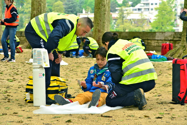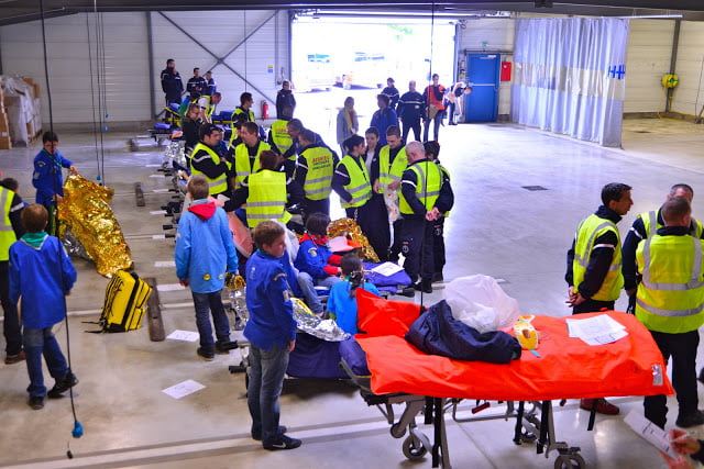 L’exercice correspondait totalement au champ de compétences pratiquées au quotidien par ces personnels. Le projet « SMP » Simulation Multiples Patients a demandé six mois de travail pour cibler tous les objectifs et affiner l’évènement (voir fiche technique). La volonté des organisateurs était d’intervenir au plus près de la réalité. Le scénario mêlait donc une pathologie commune à tous les acteurs « patients » avec des cas associés. Ce sont des Scouts et Guides de France, jeunes de 11 à 14 ans, qui ont tenu le rôle de malades.